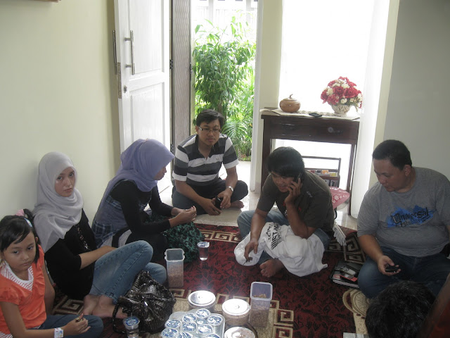 Salamulikum.... Gue bersemangat bercampur rasa gemetar dan tengsin hingga akhirnya gue salting tapi nggak salto saat bersalaman dengan para pasukan... Saat itu tercatat sudah ada Kang kombor+Yuk Kombor+Dhenok Deblog trus om Agus_ckp dan jelas sang tuan rumah Mbak Triyani+om Ranto dan keluarga.